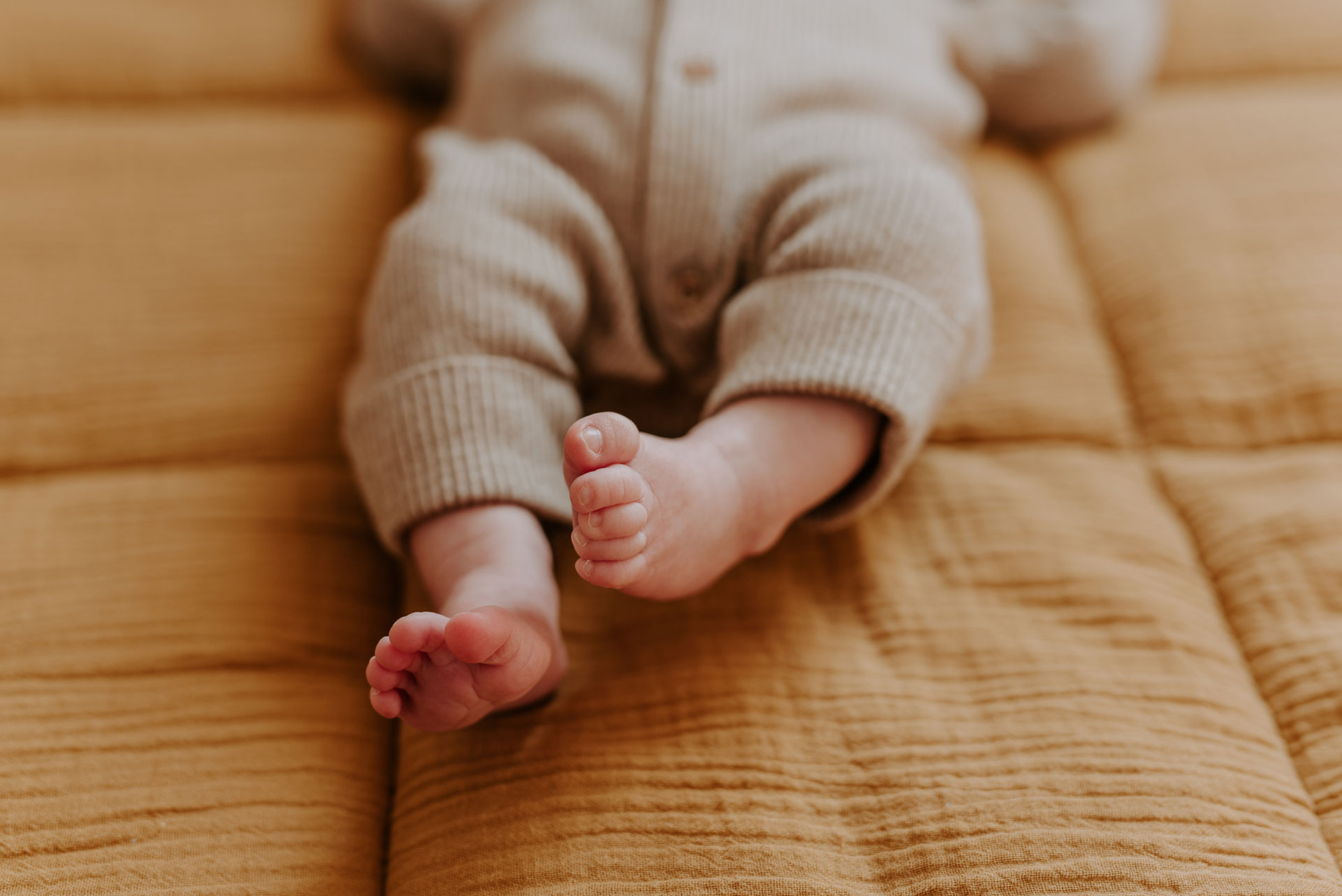 • des photos de bébé seul, dans vos bras ou posé confortablement sur votre lit par exemple. Pendant les phases de sommeil ou les phases calmes, je pourrais en profiter pour capter tous les petits détails précieux de votre bébé, ses pieds, ses mains, ses oreilles ou encore son nez.